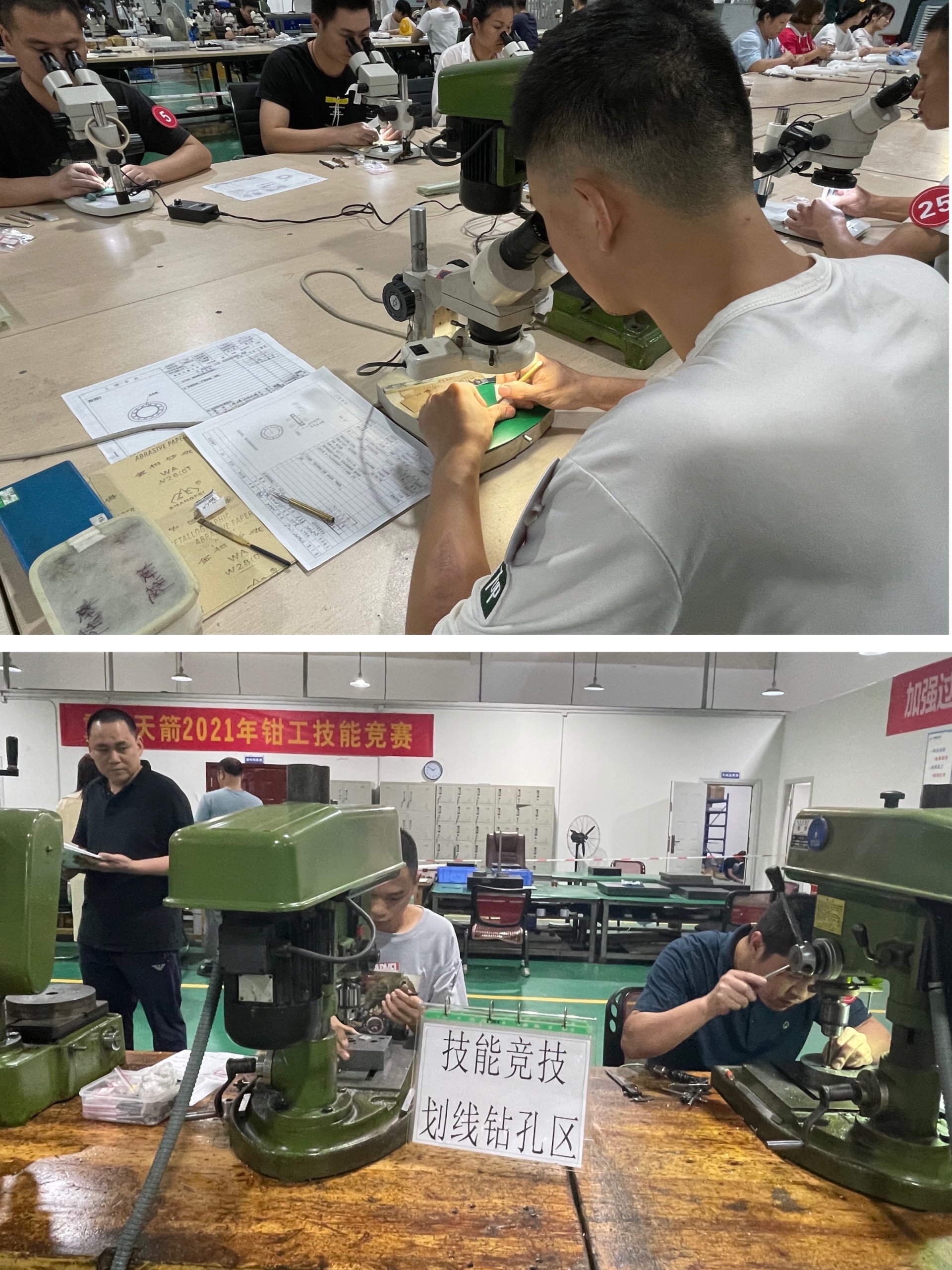 9月10日,天箭慣性在天集生產(chǎn)車間舉辦了鉗工技能大賽,四類單項(xiàng)賽目同時(shí)開展:轉(zhuǎn)子攻絲、定子沖片去毛刺、磁鋼研磨、劃線鉆孔。